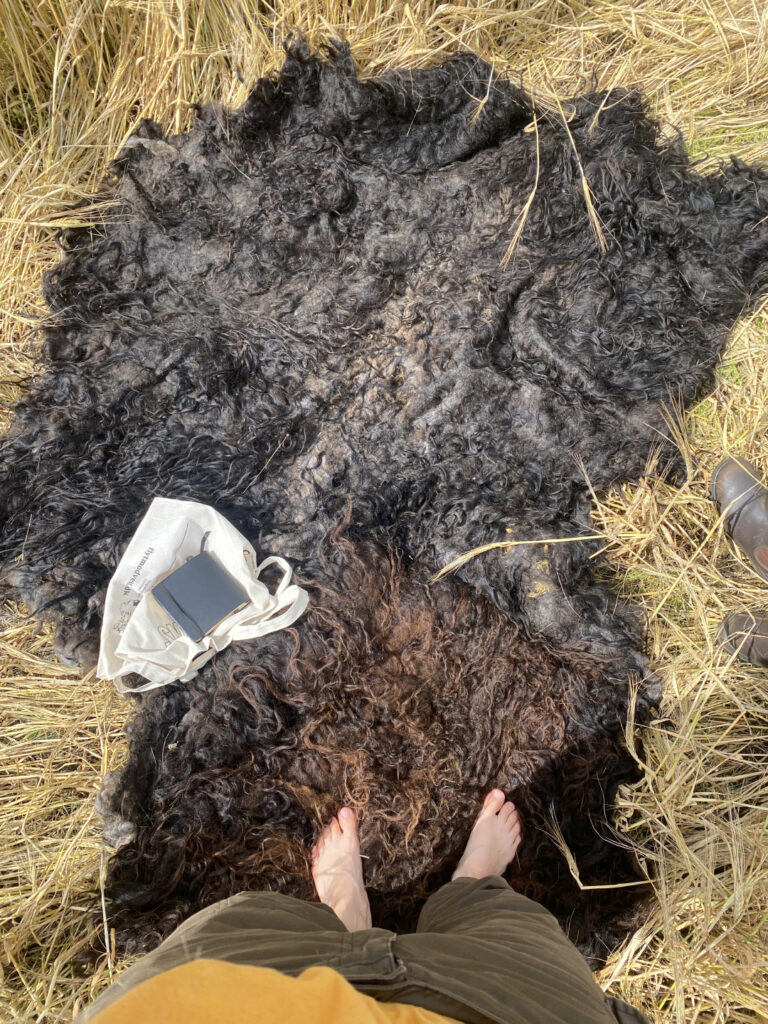 I’ve been working at Lystbækgaard (DK) summer 2025 as a shepherd and fibre artist as part of my artistic practice. I seek to understand the roots of the material that I use. Not only the hard work that happens behind great wool but also the soil.
